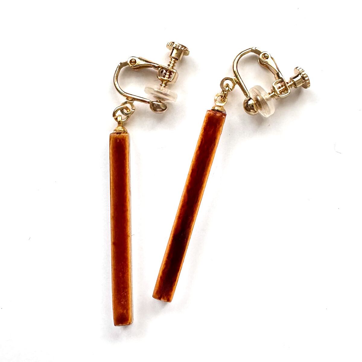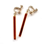 伝統工芸 飛騨春慶塗 細長い四角柱のシンプルなイヤリングです。