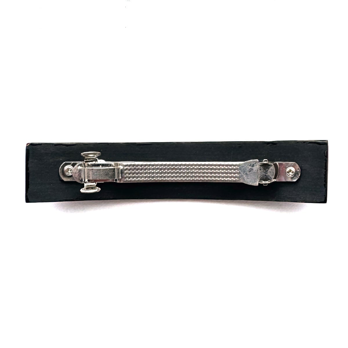 銀箔を貼った飛騨春慶塗の細長いバレッタです。